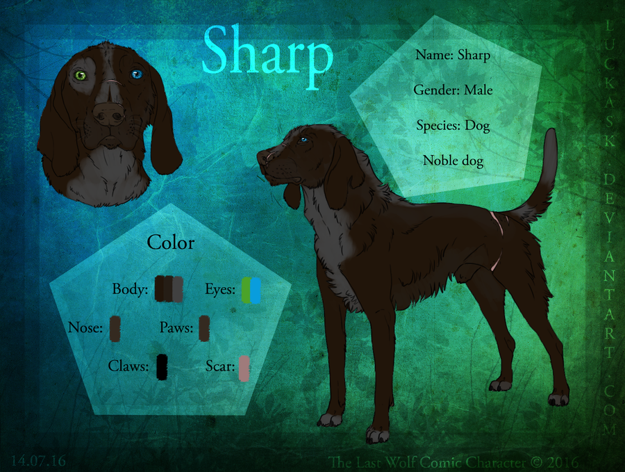 • Minulosť psíka: Sharp neprežil nejaký výnimočný život. Narodil sa na ulici kde strávil 4 roky svojho života a žije tam aj naďalej. Jediné rozptýlenie v jeho nudnom a obyčajnom živote bola jeho veľmi dobrá kamarátka Emma (ak by mal niekto záujem zahrať si ako Emma nemám problém len mi napíšte do správy, že si ju beriete na starosť). Poznal ju od mala no raz keď hrali schovávačku, skryla sa a skrýva sa už rok. Od toho dňa ju nikdy nevidel. Často na to myslí no snaží sa na ňu zabudnúť. Nedá sa však povedať, že by sa mu to darilo. Čím viac sa na ňu snaží zabudnúť, tým viac na ňu myslí.